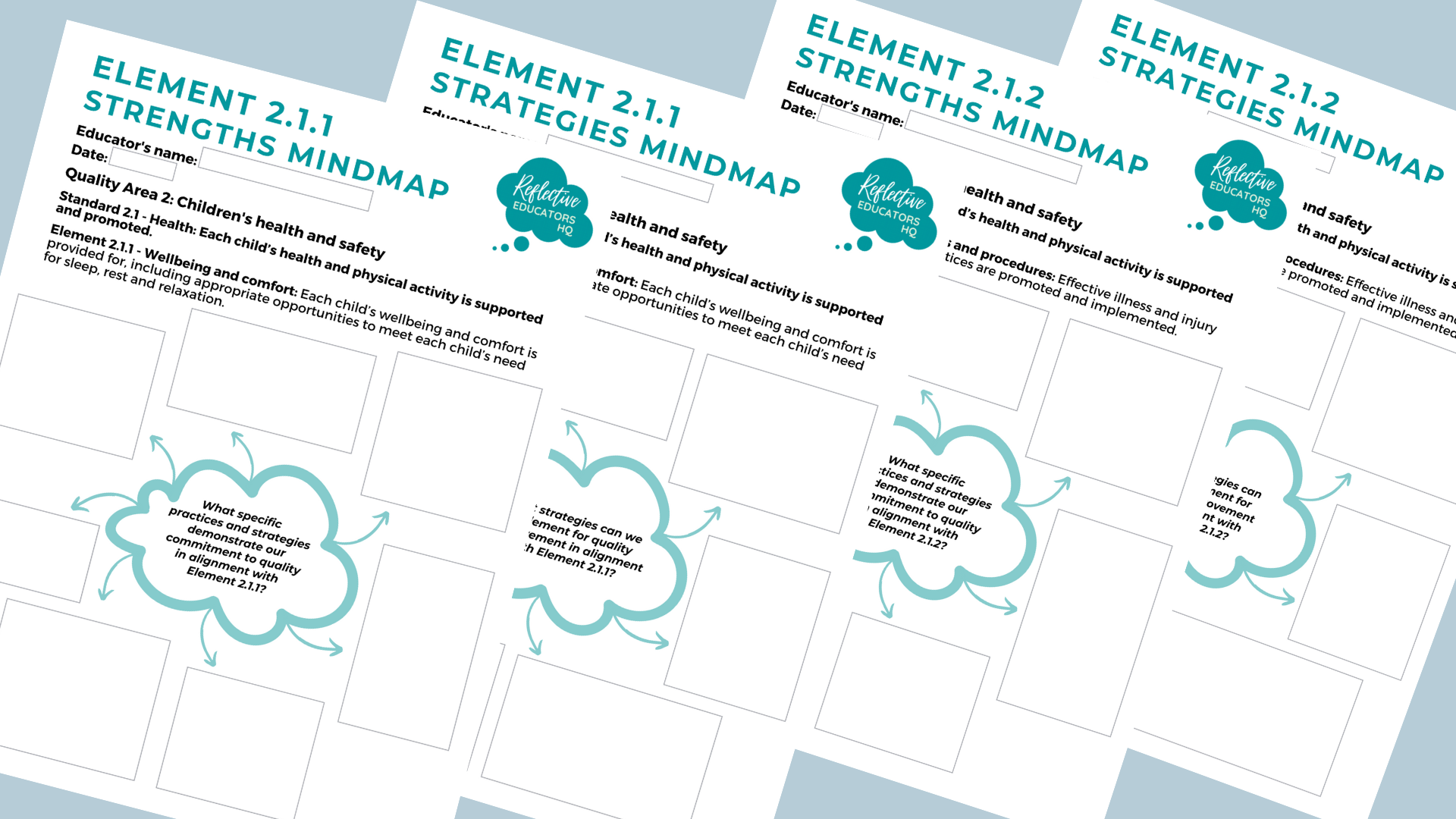 Editable PDF templates that serve as visual aids for educators to self-assess their practices. These mind maps help in visually organising strengths and strategies aligned with each quality area.