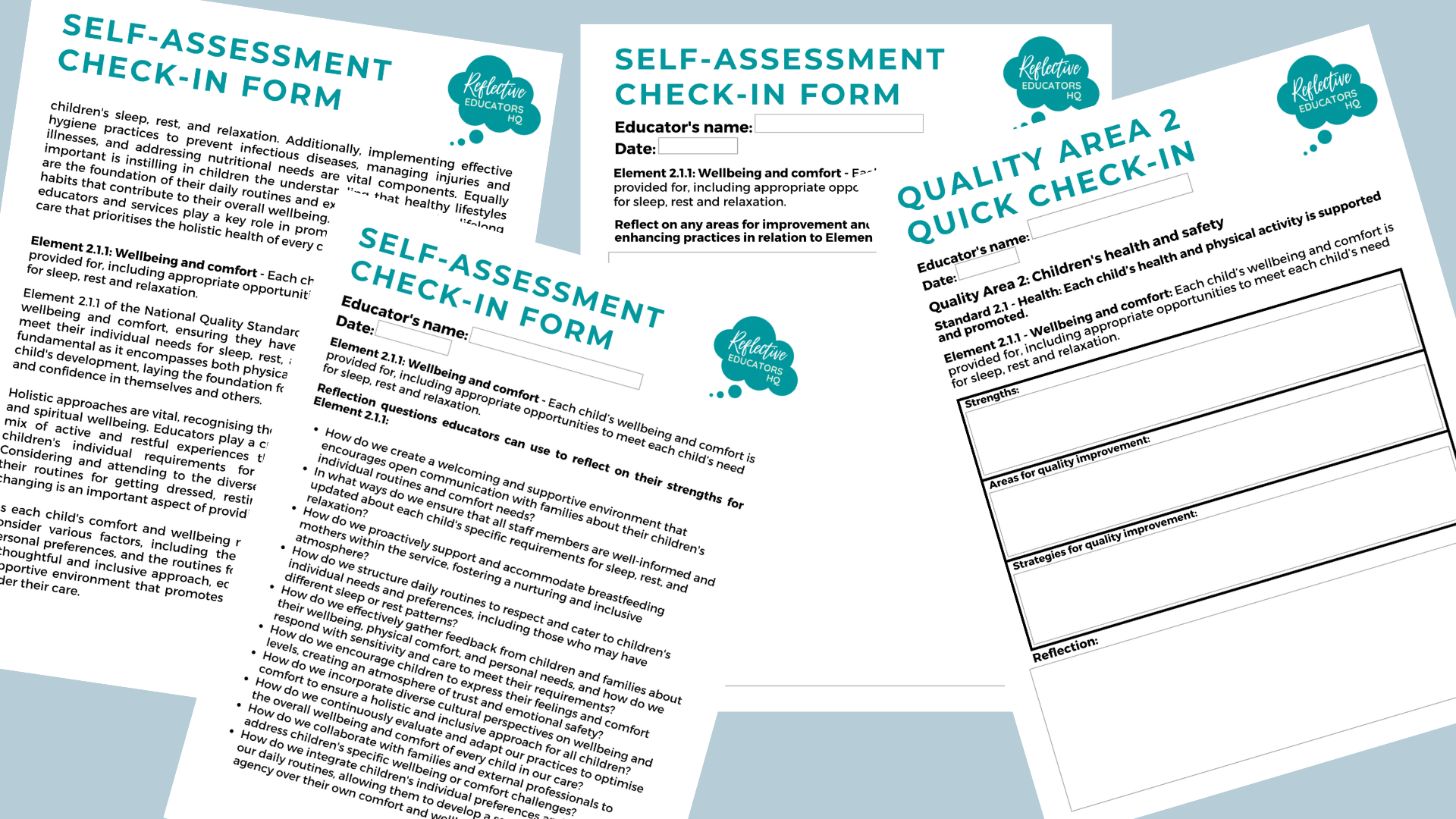 The toolkit offers self-assessment forms for each of the six quality elements in Quality Area 2. These forms enable educators to reflect on their strengths, areas for improvement, and potential strategies specific to each element.